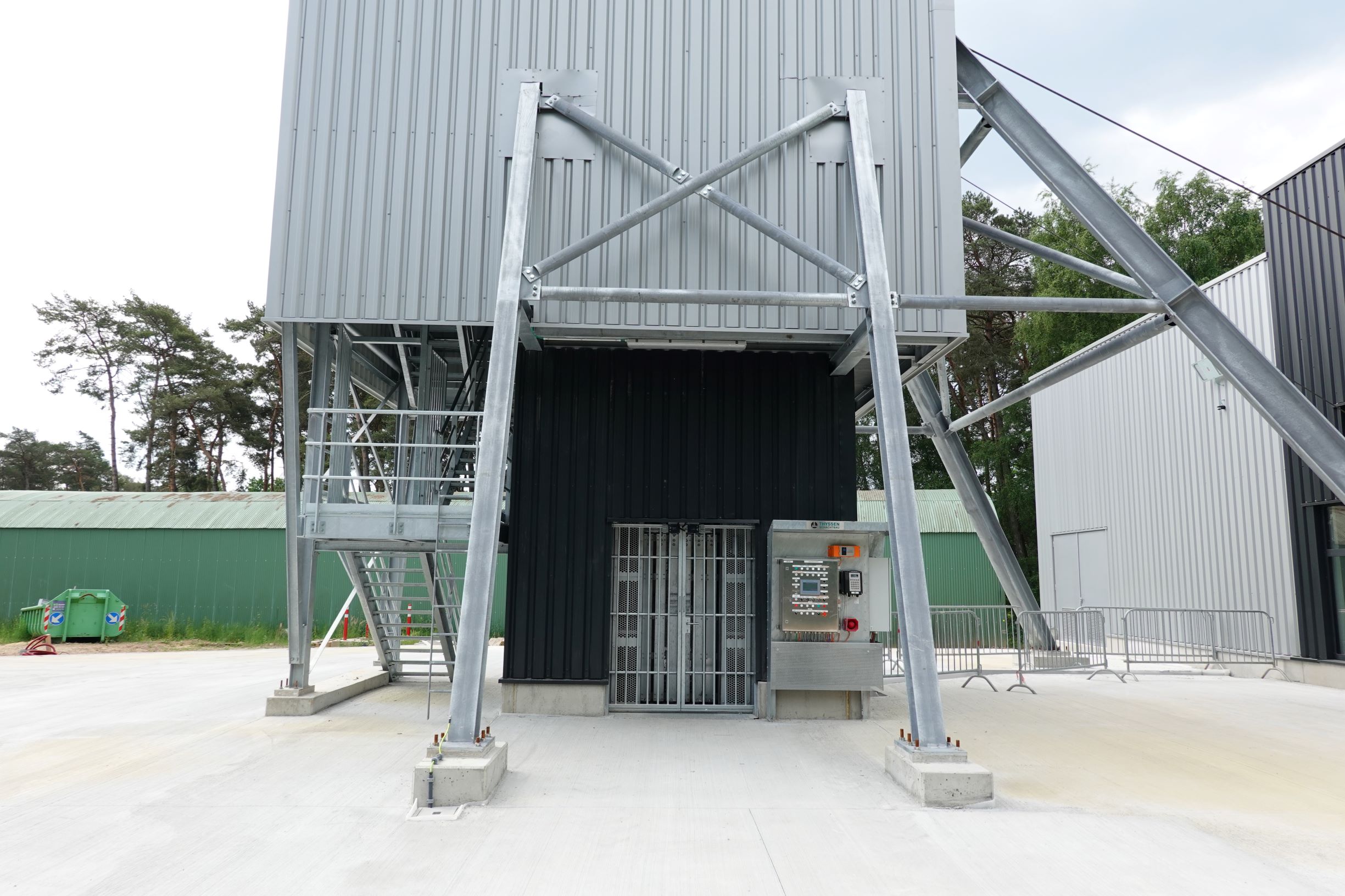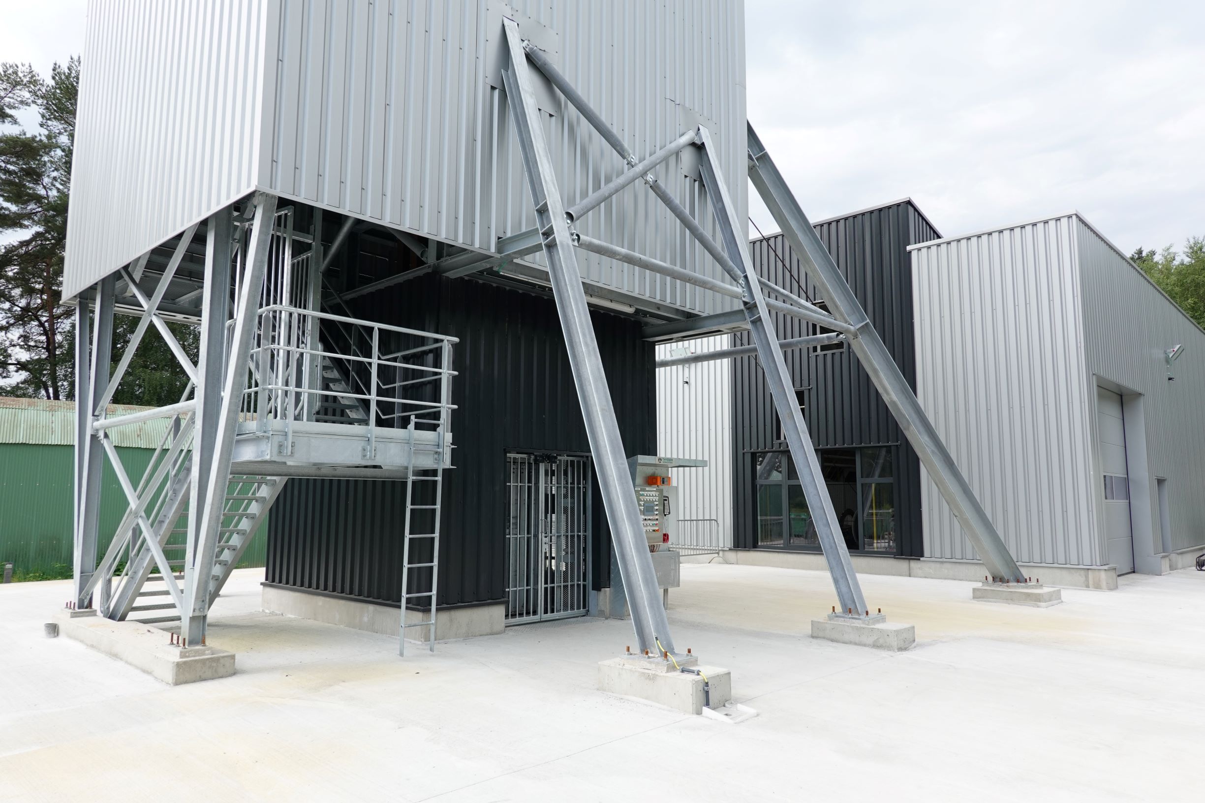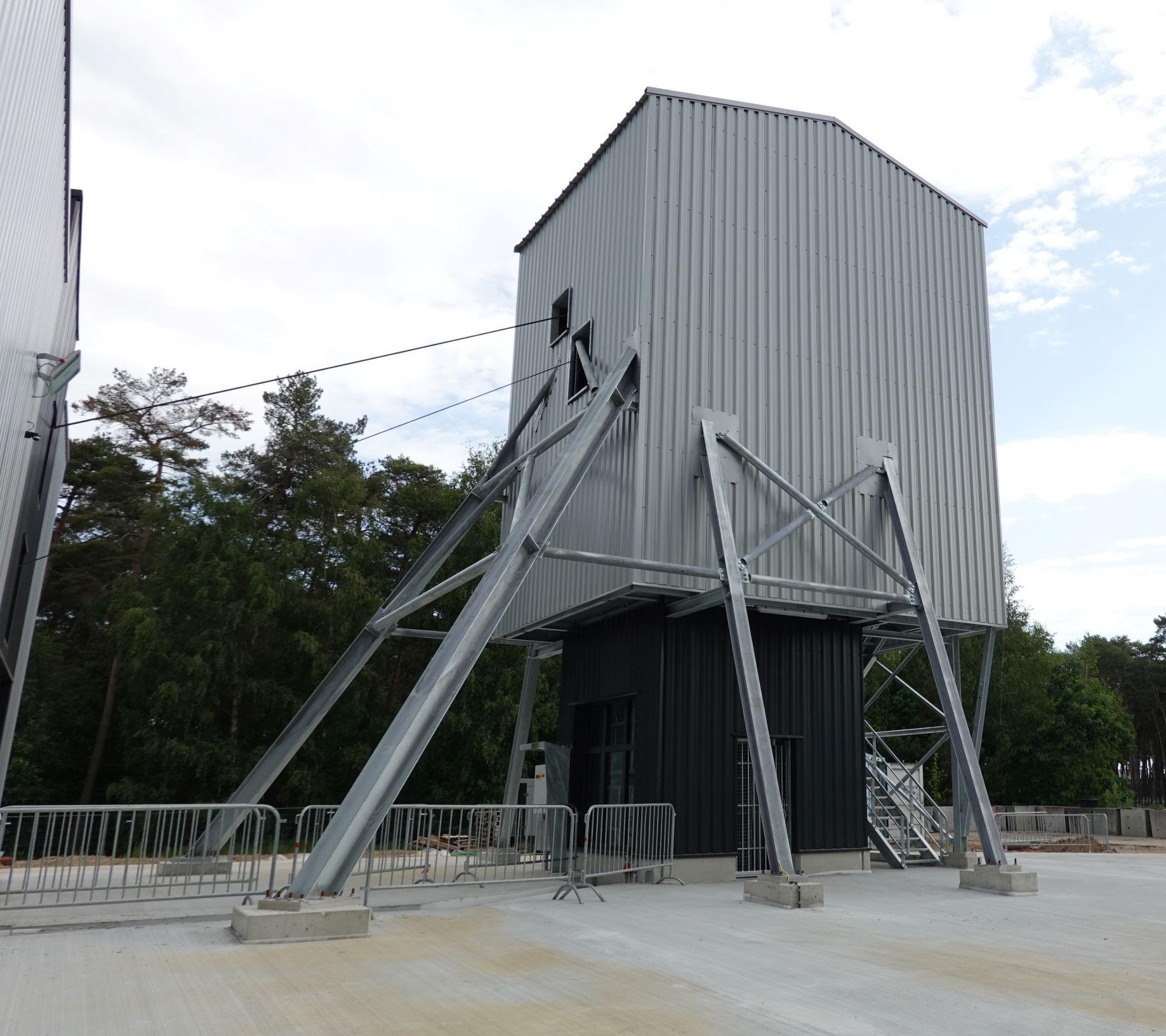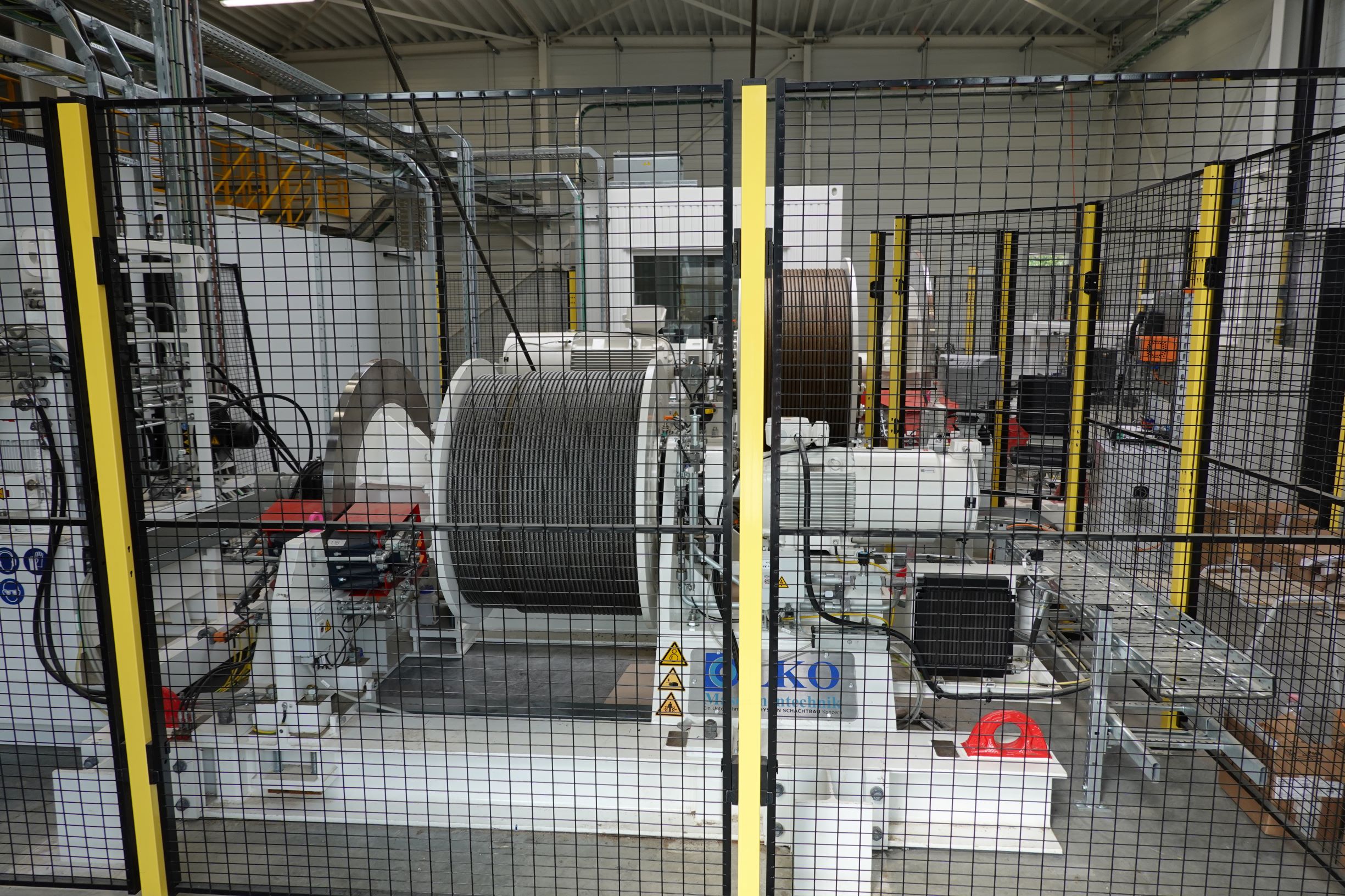 The new hoisting system has already been installed and will soon be put into operation. The pictures show the new hoisting building, the machine that will drive the hoisting system, the cable from which the hoisting cage will hang and the tower to carry it all.