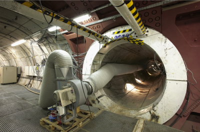 Ici, vous vous trouvez devant l'entrée de la galerie PRACLAY, longue de 45 m, qui est perpendiculaire à la galerie principale. La galerie PRACLAY est utilisée pour une expérience thermique de grande échelle pour simuler le dégagement de chaleur se produisant lors du stockage des déchets de haute activité.