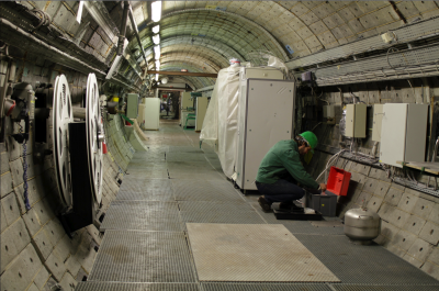 Ici, dans la partie la plus ancienne du laboratoire, un certain nombre d'expériences ont été demarrées dans les années 1980. Elles font encore l'objet d'un suivi à l'heure actuelle. C'est la seule partie du laboratoire où le revêtement de la galerie est constitué d'anneaux en fonte.