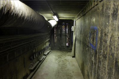A hauteur de la cage d'ascenseur du premier puits, la galerie devient plus étroite. Au-delà du premier puits se trouve la plus ancienne partie du laboratoire.